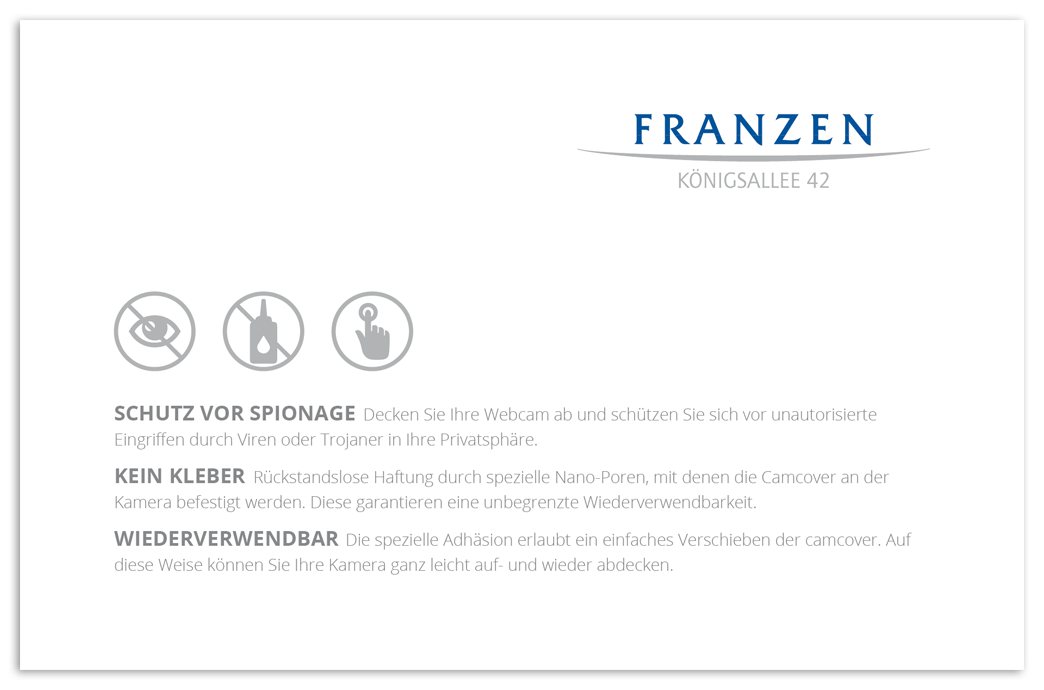 Bestellen Sie unsere Camcover mit Ihrem Firmenlogo inkl. Werbekarte!